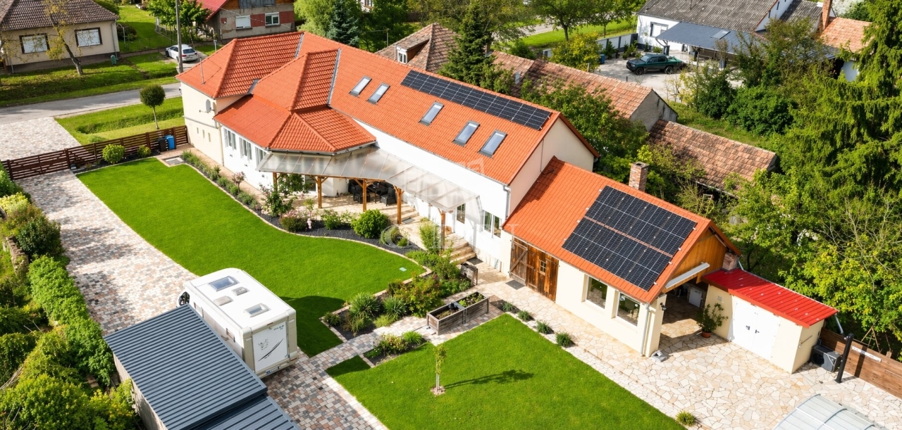 A mindennapokat tovább könnyítik a praktikus kiegészítők, mint a műhely, tárolóhelyiségek és fedett parkolók. A 6 kW-os napelemrendszer hozzájárul az energiahatékonysághoz, így hosszú távon gazdaságosabb fenntartást tesz lehetővé.