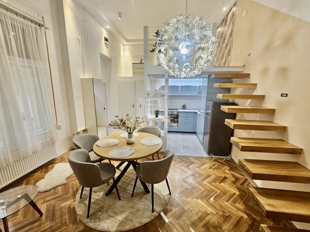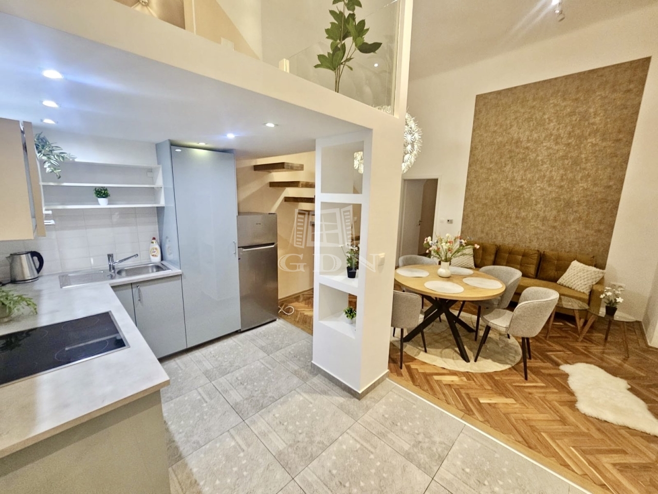 48 m²-es, 2 szobás, felújított lakás az Arany János utcában, földszinti elhelyezkedéssel. Az ingatlan különlegessége a praktikusan kialakított dupla galéria, amely jelentősen megnöveli a lakás használható életterét.
