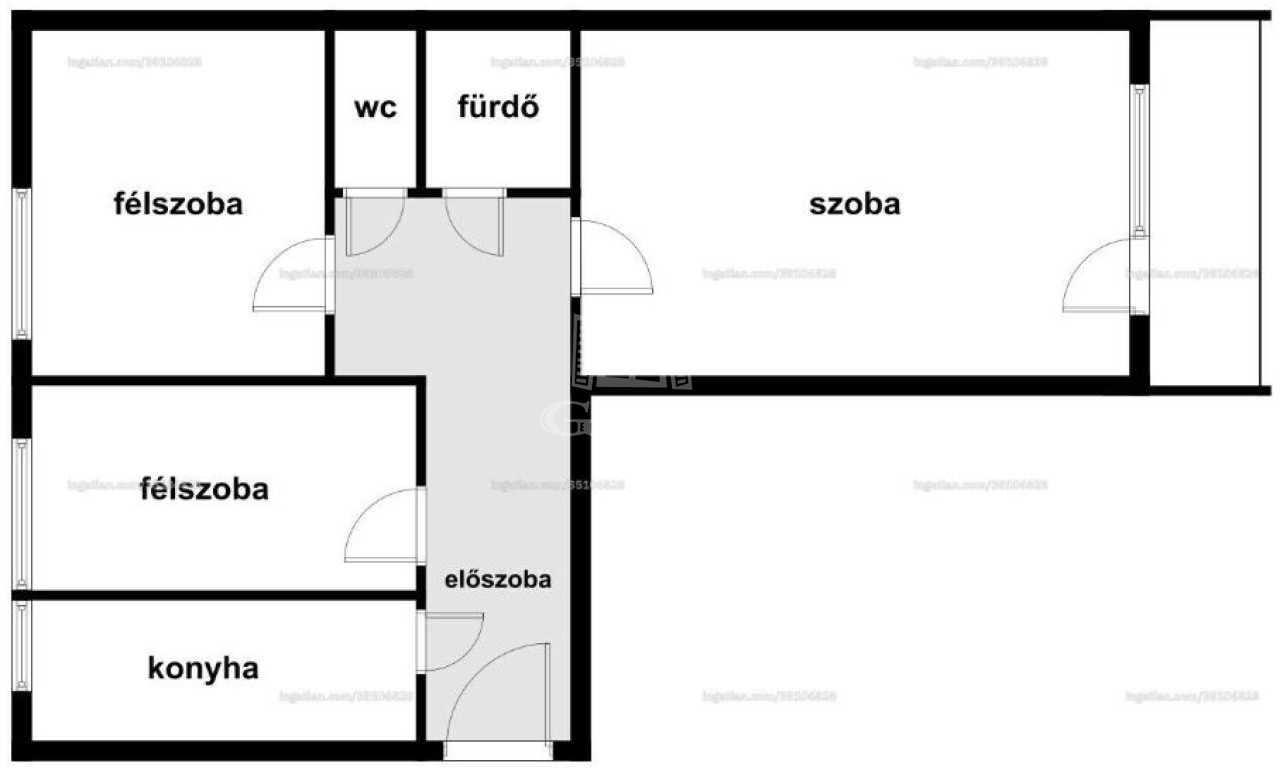 Konyha, fürdőszoba, külön WC