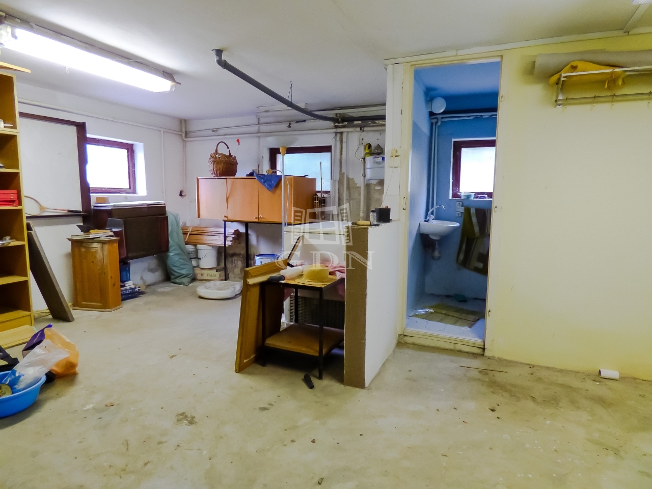 A pincében külön wc, vízvételi lehetőség áll rendelkezésre, továbbá egy nagyobb tároló és egy kis műhely került kialakításra.