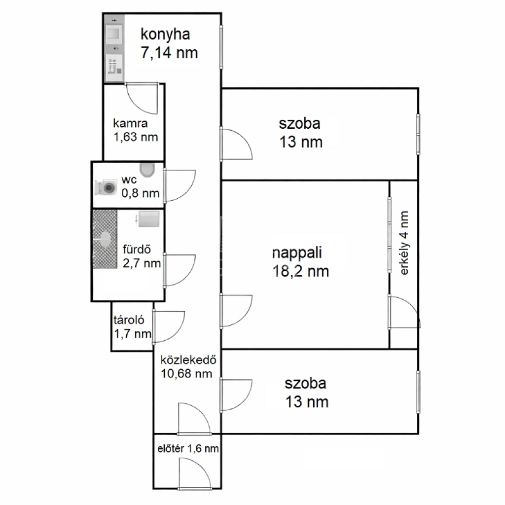 A konyhát még ízlése szerint alakíthatja és akár a kamrával bővítheti.