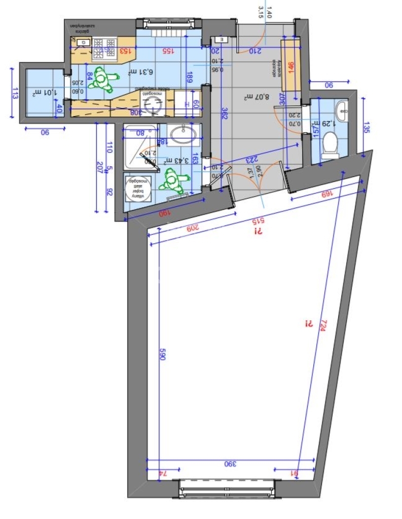 | 62 m2Alapterület | 1 Szoba |