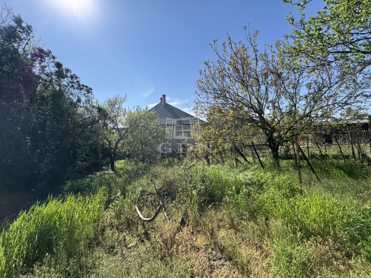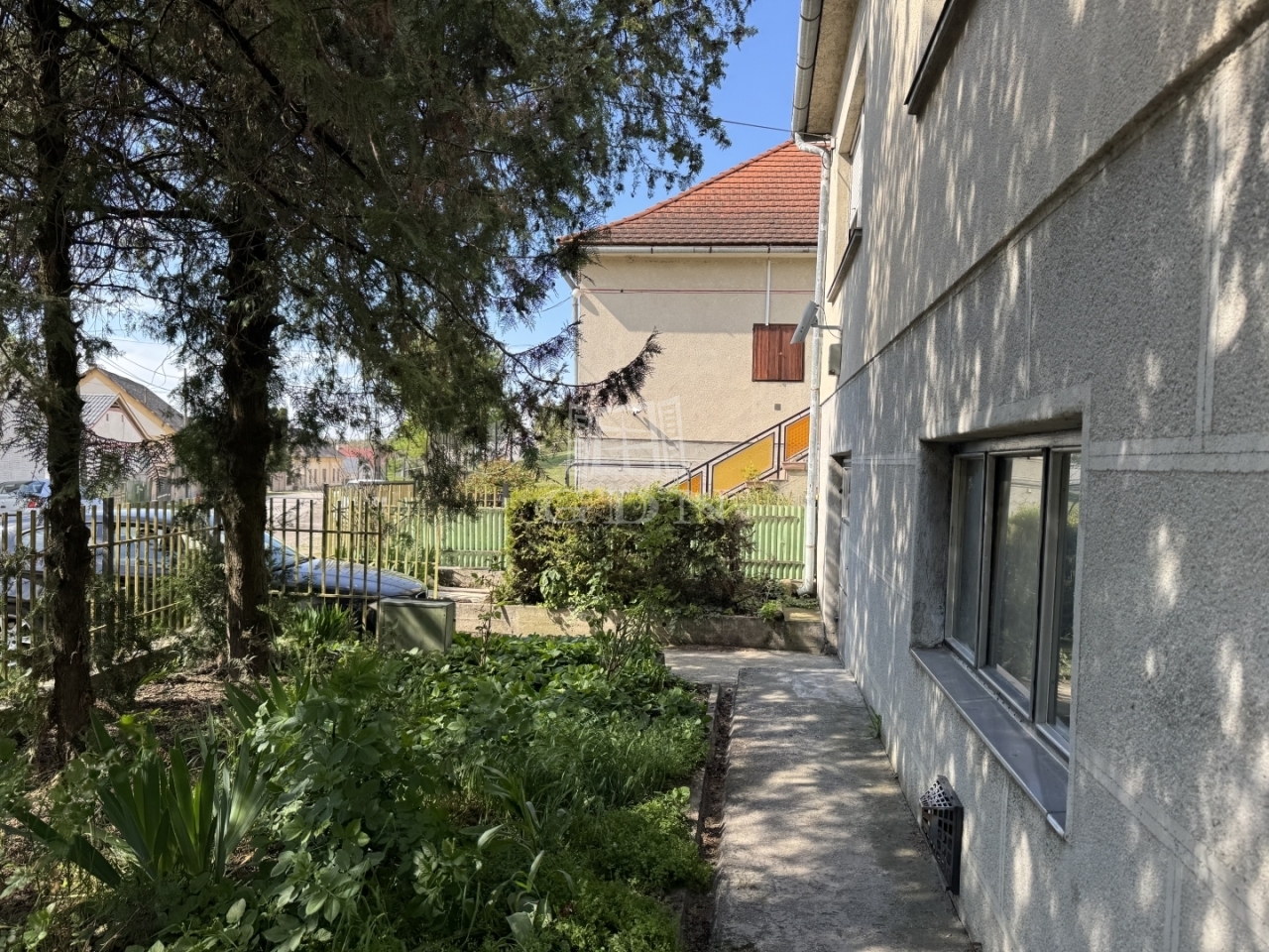 A telek 841m2, hátsó részében gyümölcsfák és szőlő található.