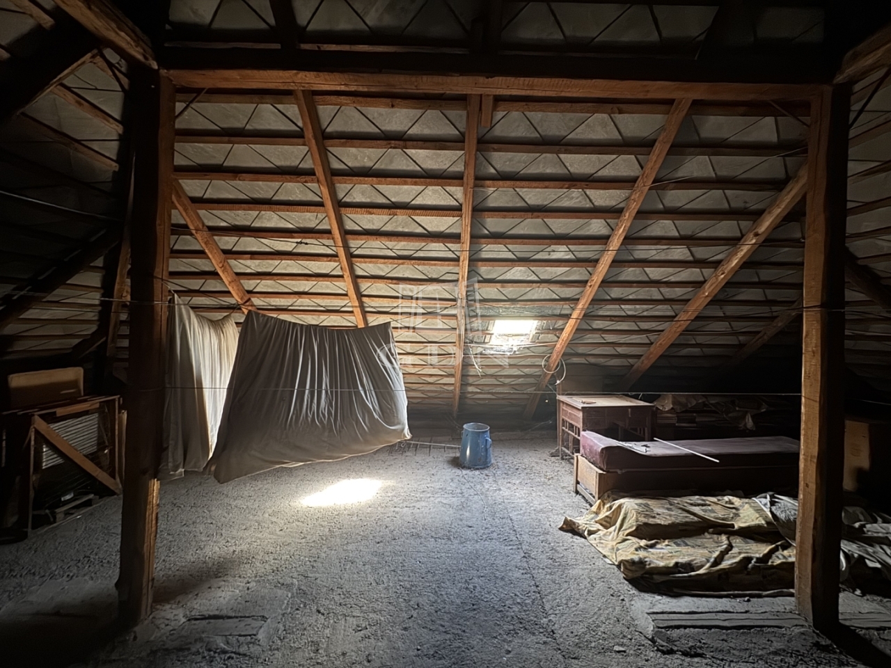 A tetőtéri rész jelenleg padlásként funkcionál, de beépíthető, tetőszerkezete jó állapotú.