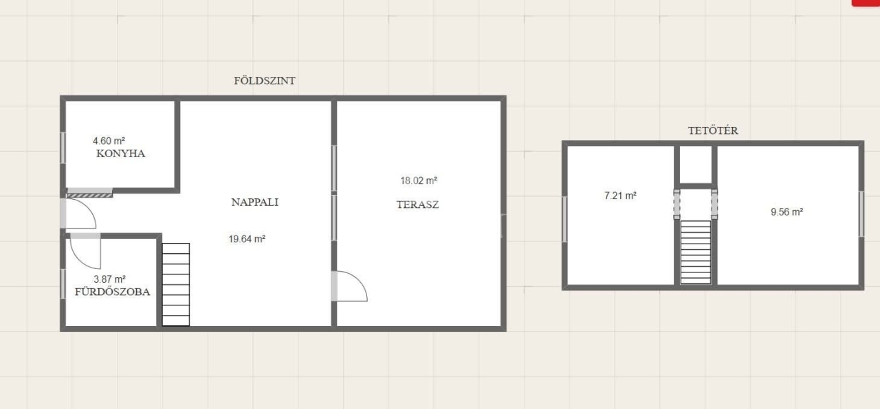 • Lépcsőn megközelíthető, faburkolatú szoba
