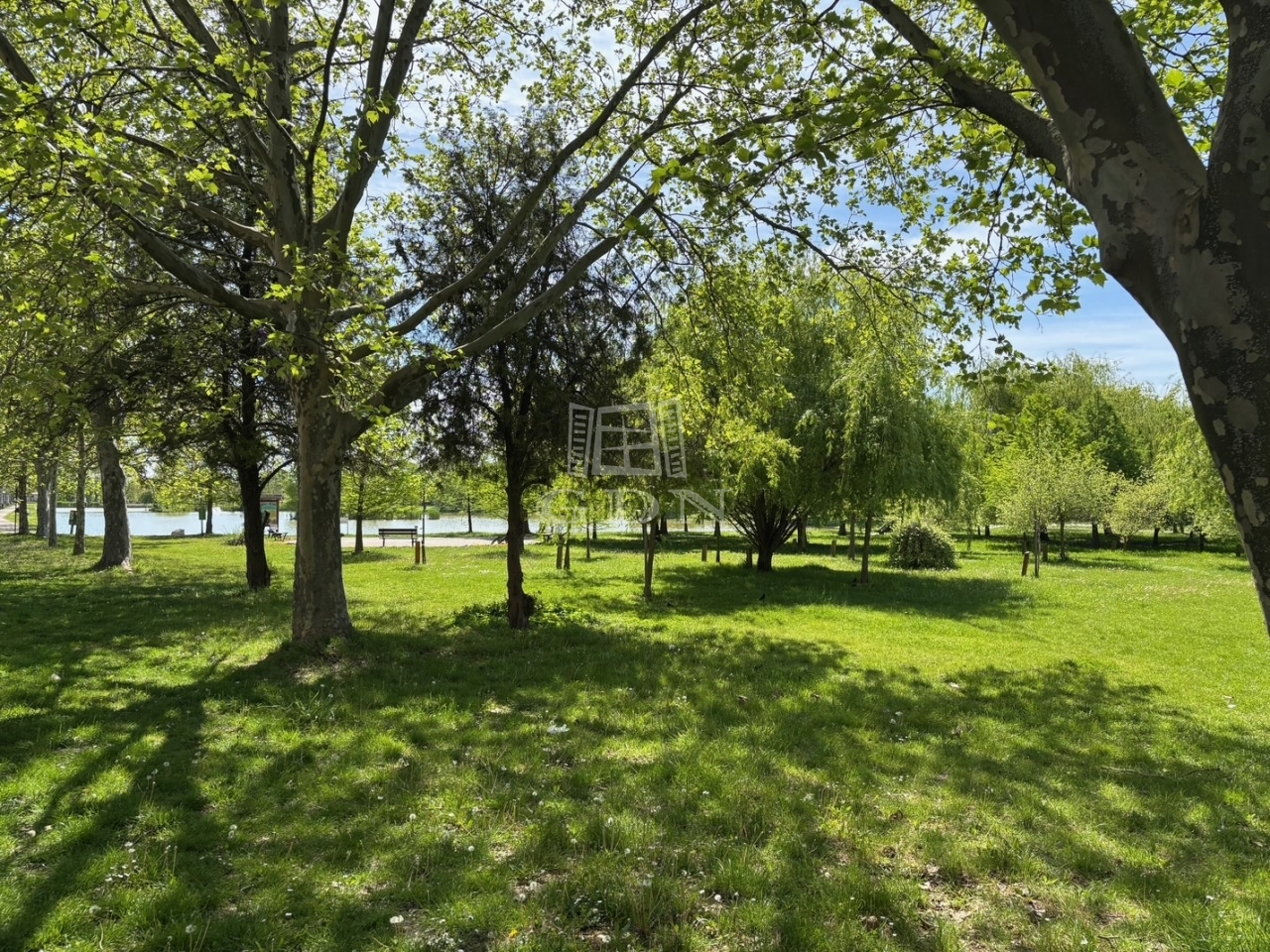 A lakásból nyíló panorámás kilátás lenyűgöző, az ablakból a Rüdiger-tóra és a mellette elhelyezkedő gondozott parkra látunk.