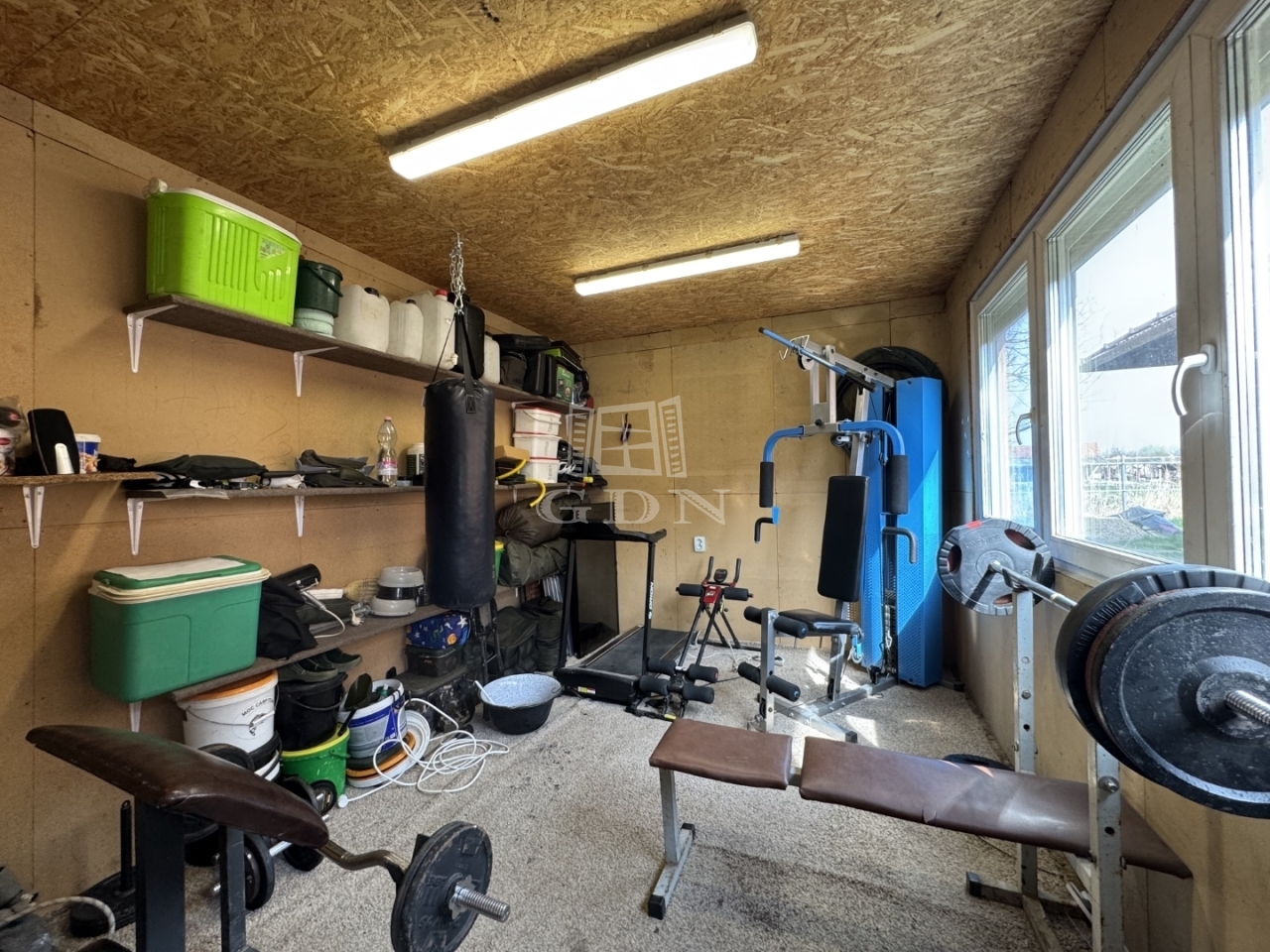 A ház mellett található egy ~50m2-es duplagarázs és tároló helyiség is, mely fa könnyűszerkezetes technológiával épült homlokzati és födémszigeteléssel.