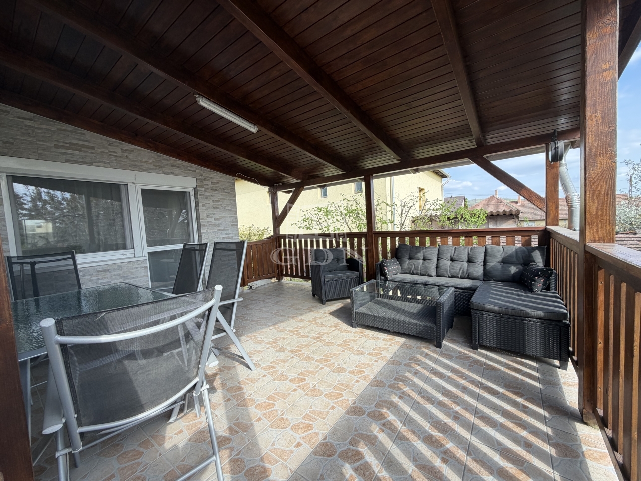 A családiház 18 nm-es terasza alatt egy kicsit nagyobb, körülbelül 20 nm nagyságú félszuterén pince található.