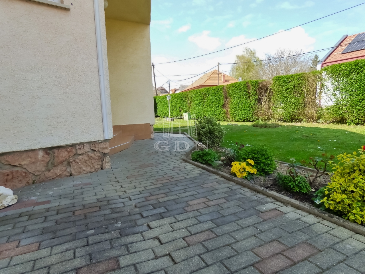 A kert gondozott, rendezett, kikapcsolódásra, pihenésre kiválóan alkalmas, az öntözés, esetlegesen egy medence feltöltése ásott kútról megoldott.