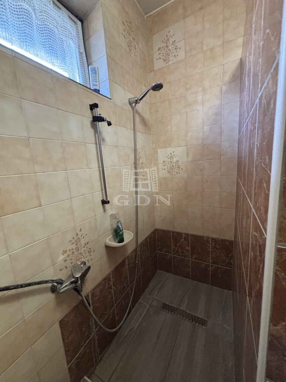 Tágas fürdőszoba,- burkolatokat 2020-ban cserélték.