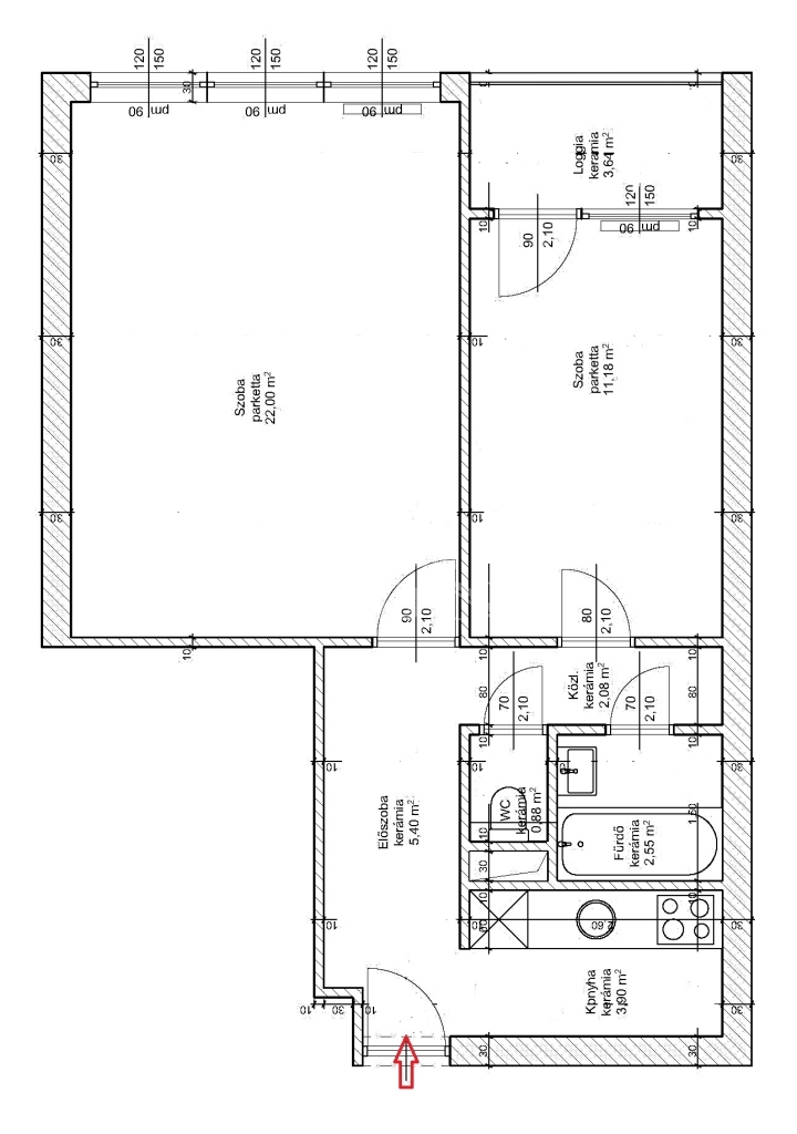 Konyha, külön WC, fürdőszoba, valamint két szoba, melyek közül a kisebbhez loggia kapcsolódik.