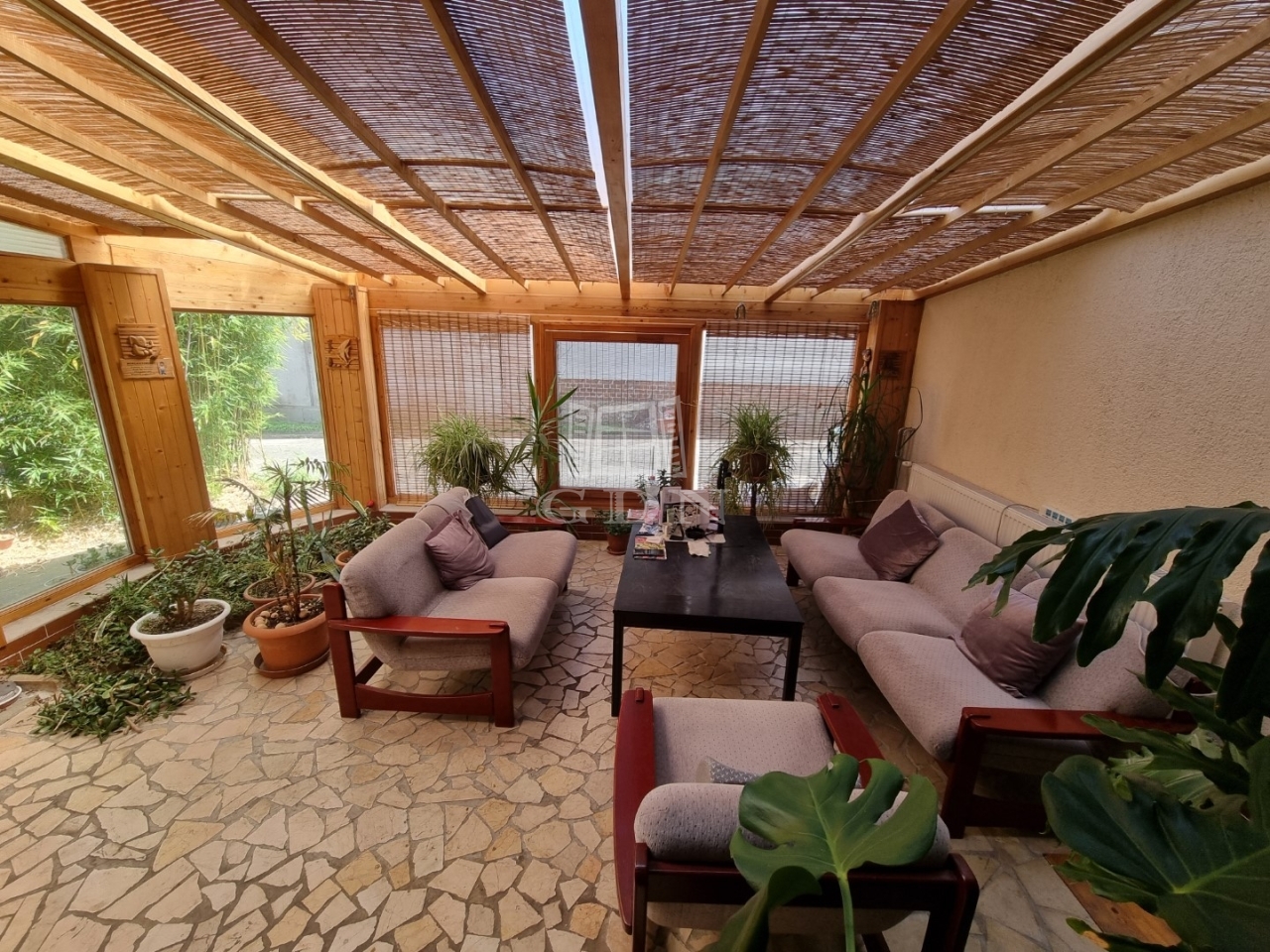 A ház 1992-ben épült, 38 tégla falazattal, cseréptetővel. 2024-ben minden nyílászáró ki lett cserélve korszerű, műanyag 3 rétegű üvegezésüre, redőnnyel és, szúnyoghálóval ellátva. A ház fűtését gázcirkó kazán biztosítja radiátoros hőleadással, plusz vegyes tüzelésű kazán 2000 literes puffertartállyal, minden szobában mennyezeti infra panel, és a közösségi térben van egy kandalló. A burkolata jó minőségű márványkő, illetve laminált parketta. A terasz / télikert beépített, árnyékolóval ellátott. Az ingatlan rendkívül jó állapotú. Riasztóval ellátott.
