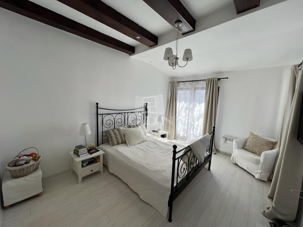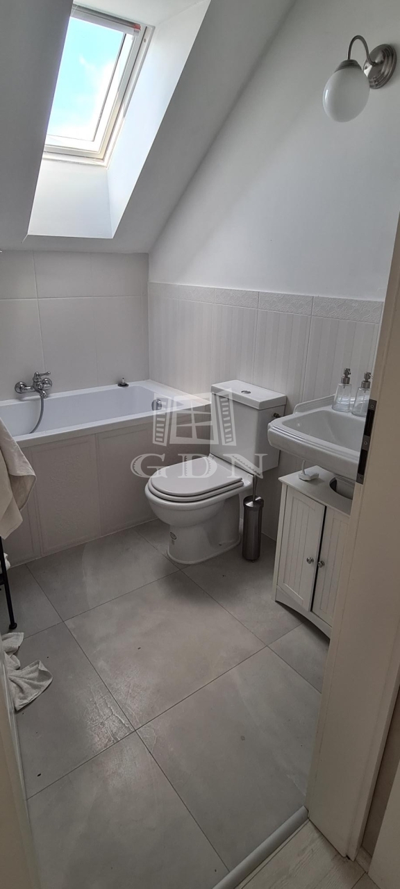 A lakótérhez egy 25 m²-es terasz kapcsolódik, a tárolási lehetőségeket pedig egy 50 m²-es padlástér egészíti ki. A komfortérzetről gázkazán, elektromos panelek és kandalló gondoskodik, a hálószobák klimatizáltak.