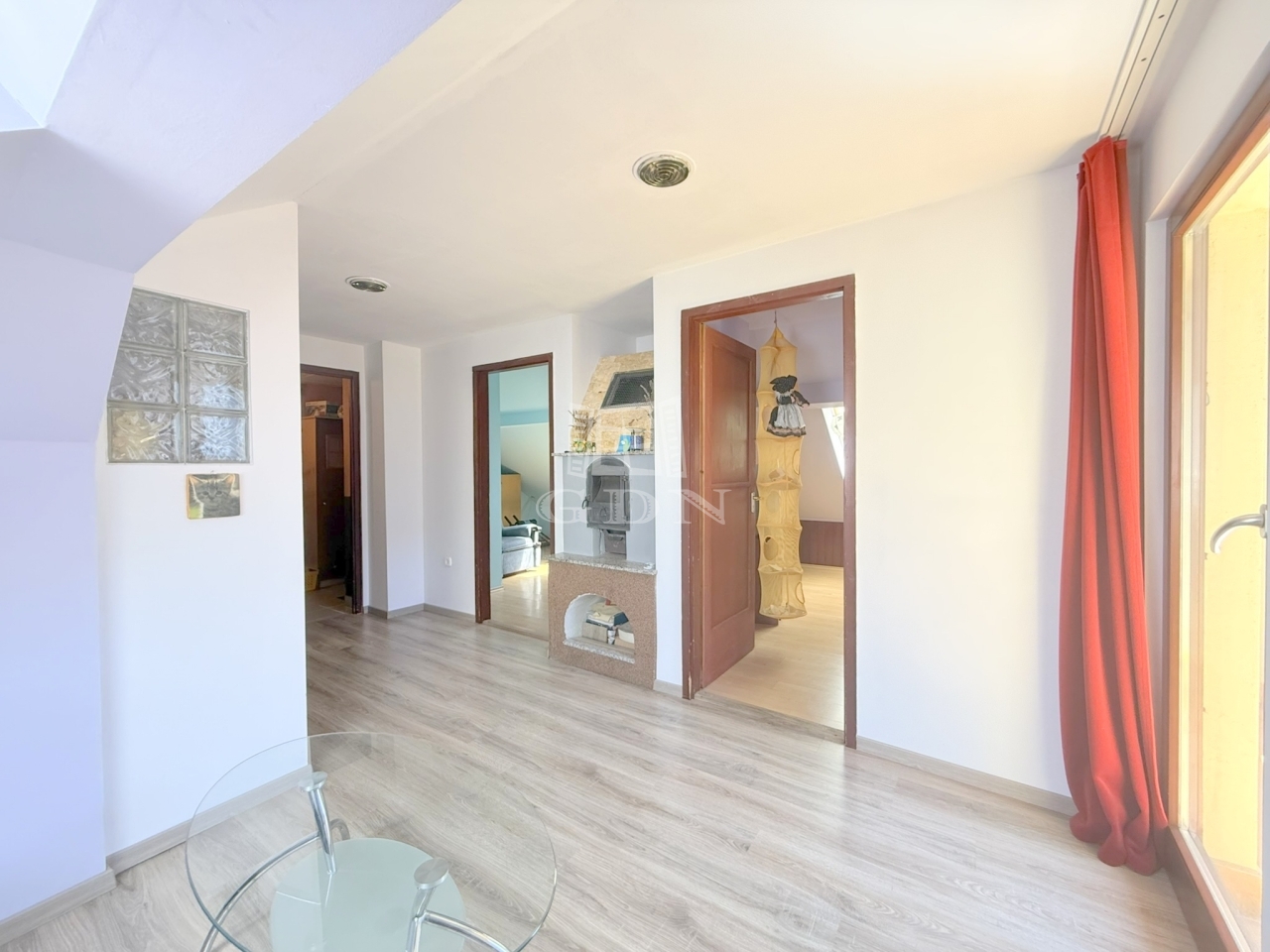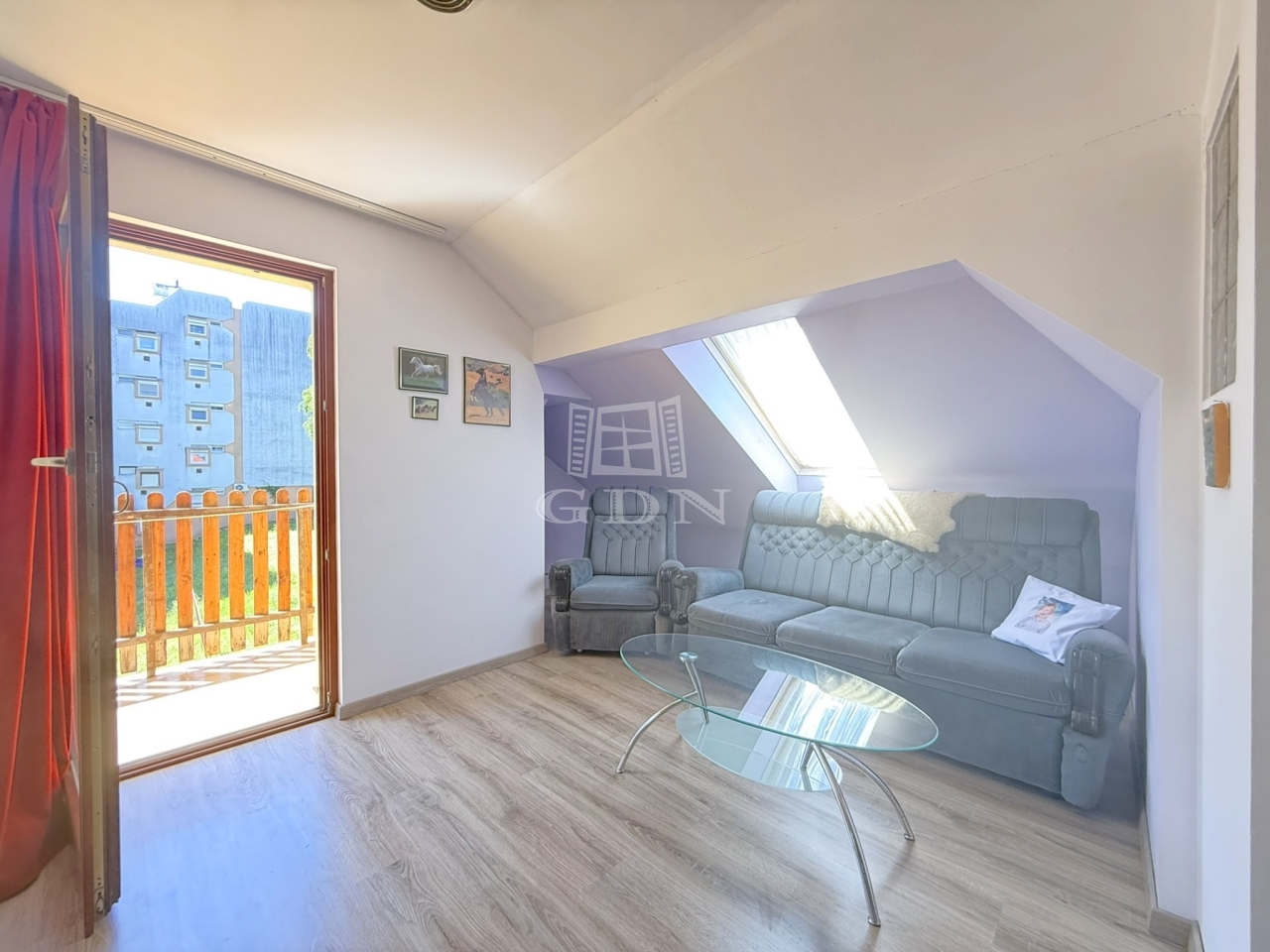 A tetőtér beépítésre került egy kis lakás formájában, melyben egy pici főzőfülke, egy zuhanyzóval és toalettel ellátott fürdő, egy nappali és 2 háló áll rendelkezésünkre. A nappali és az egyik háló szintén erkélykapcsolatos.