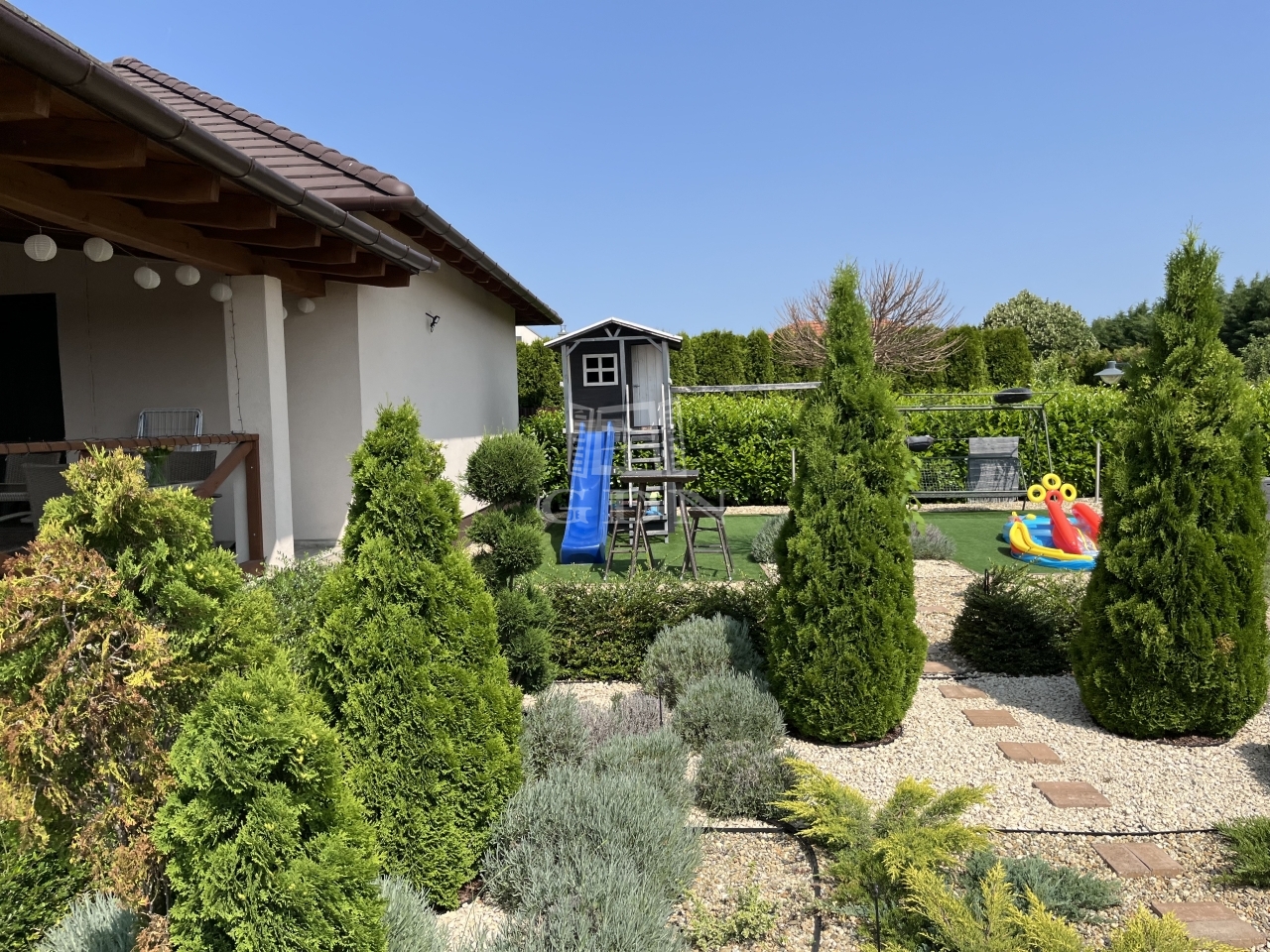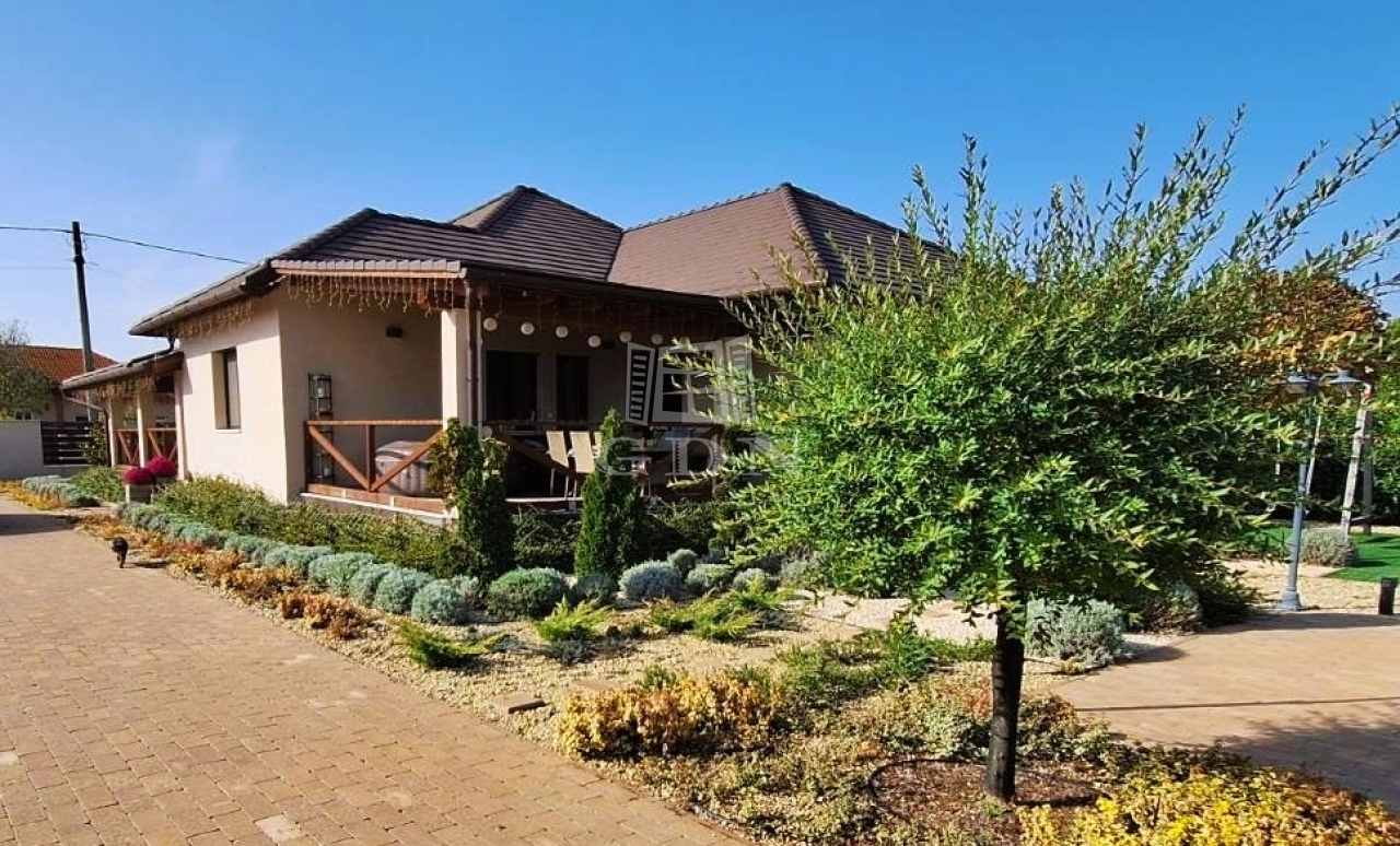 Világos, nagyvonalú terek, 68 m²-es nappali-központ, külön szülői lakrész – minden a kényelmes, jól élhető otthonról szól. Minőségi kivitelezés, átgondolt részletek, gondozott kert.