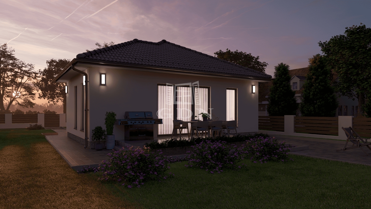 A hirdetésben szereplő ingatlan a Hádész típusház. A Hádész ház ára a kulcsrakész állapot alapján került kiszámításra.
