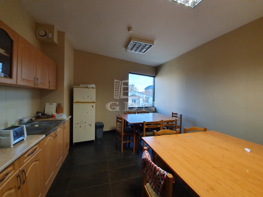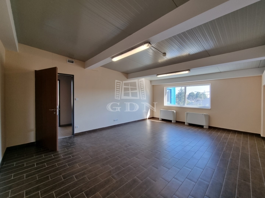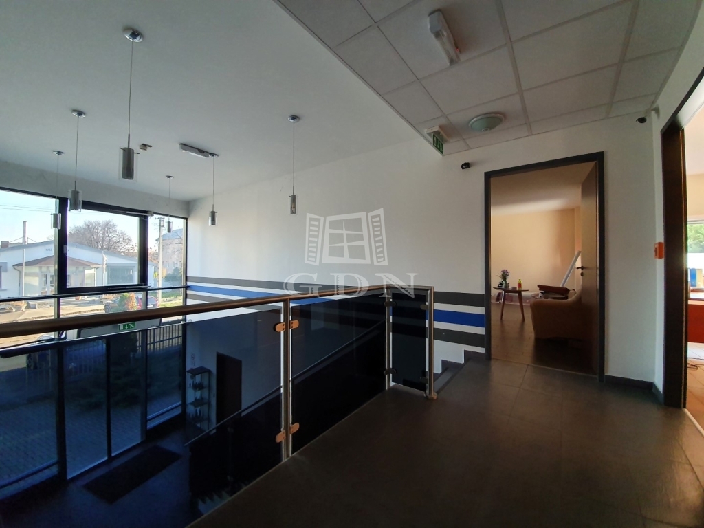 Az épület elosztását tekintve egy utcafronti háromszintes iroda-fejépületből és egy kétszintes, több szekcióból álló, de egybenyitható gyártó-üzemi és/vagy raktár területből áll.