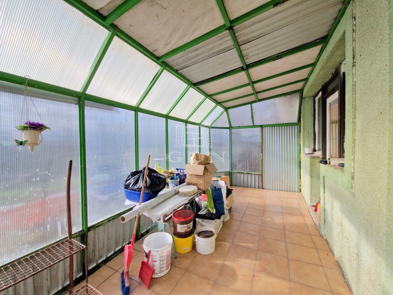 - KÖVETKEZŐ SZINTEN: egy szélfogónak, egy előtérnek, egy világos konyha - étkezőnek, 2 szobának, egy toalettel és fürdőkáddal felszerelt fürdőnek, egy spejznek, valamint egy lépcső fel és lejárónak.