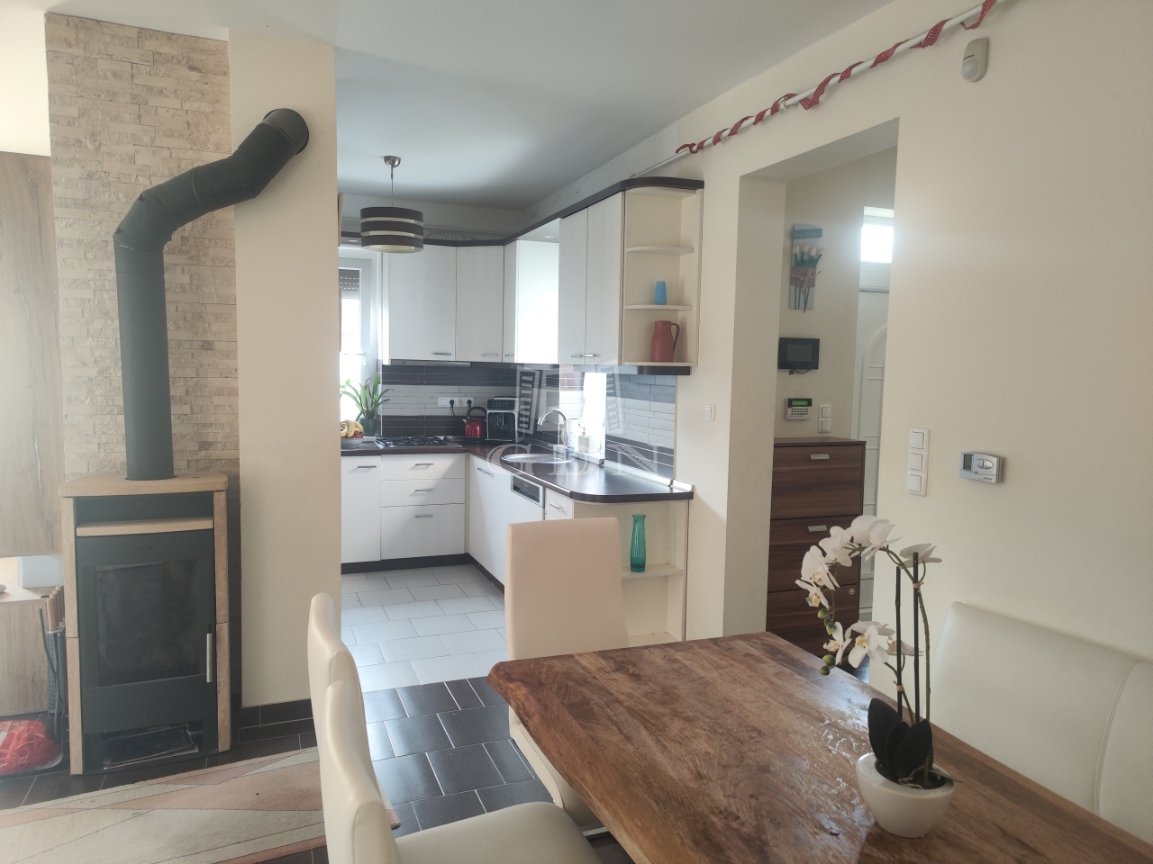 A takarékos fűtésről gázcirkó és egy hangulatos kandalló gondoskodik, így a lakás minden évszakban kellemes és otthonos, ami a ház kiváló szerkezeti kialakításának is köszönhető. A modern napelemek is hozzájárulnak a költségek csökkentéséhez.