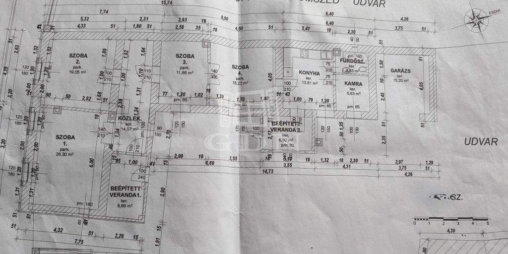 - a nagy része kő és vályog falazatú (50 cm!), az alaprajzon szereplő 26 nm-es szobából ytong falazatú fürdőszoba került kialakításra.