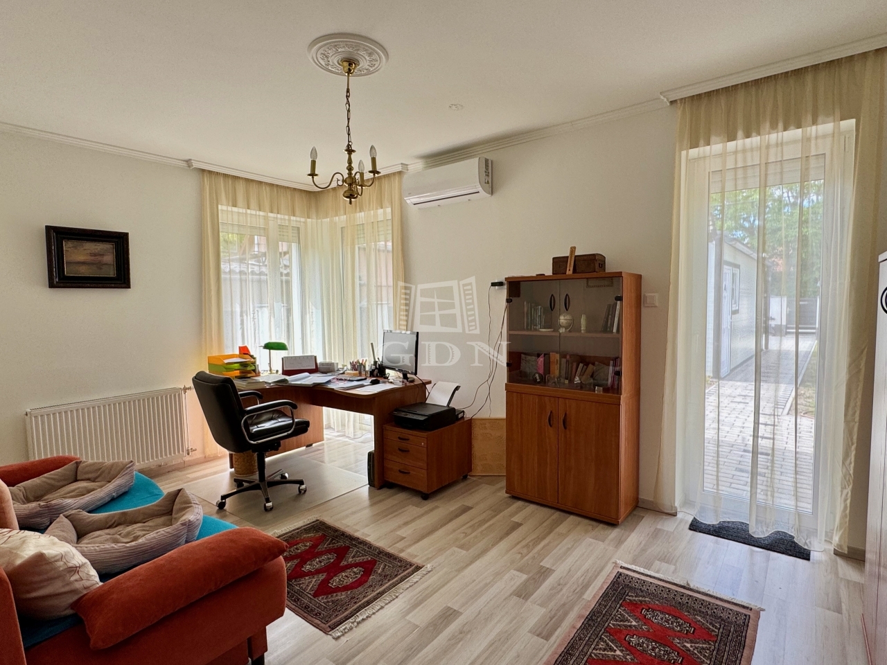 A ház kertvárosias, zöldövezeti környezetben épült, 38-as téglából, vasbeton födémmel, cseréptetővel, 15 cm-es hőszigeteléssel.