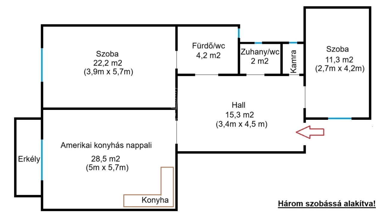 84 m2Alapterület 2 Szoba