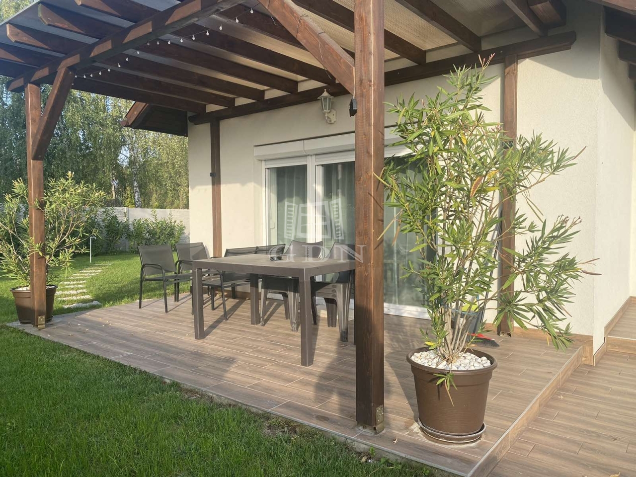 Tartozik hozzá 2 fedett autóbeálló és további 1 felszíni parkoló, kerti kisház, fedett grillterasz és gondosan parkosított kert.