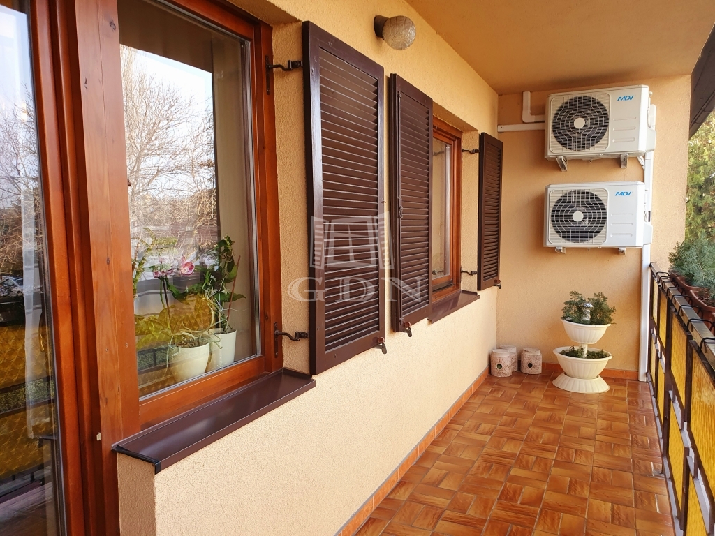A nyílászárók is újak (hő és hangszigetelt fa szerkezetűek árnyékoló zsalugáterrel).