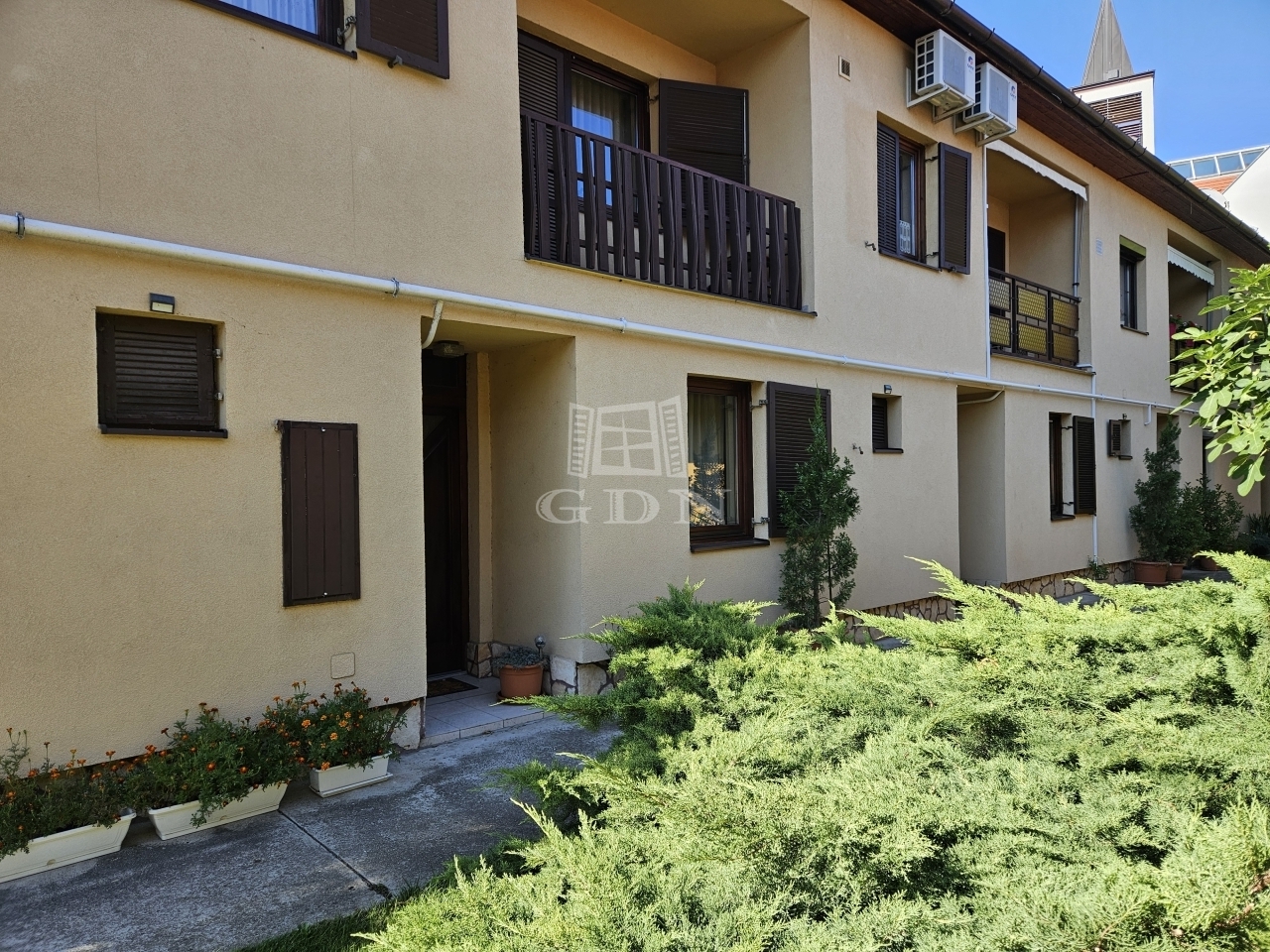 A lakás bejáratánál szép előkert fogad.