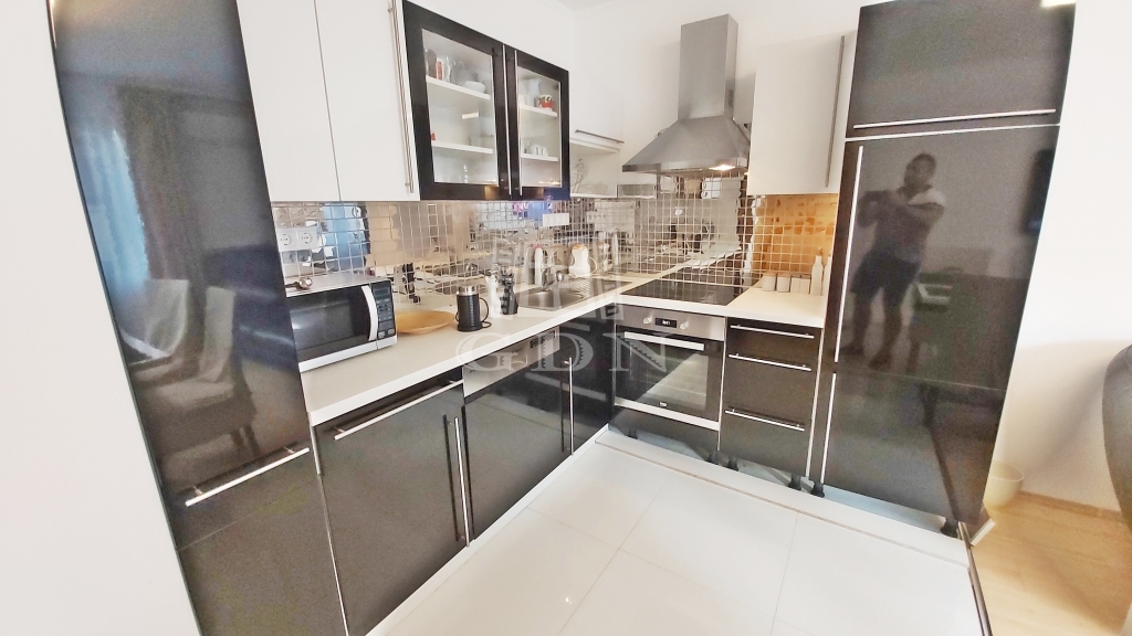 Bútorozott, gépesített (hűtőgép, mosógép, sütő, főzőlap, mikró sütő, TV-k, 3 db klíma készülék).