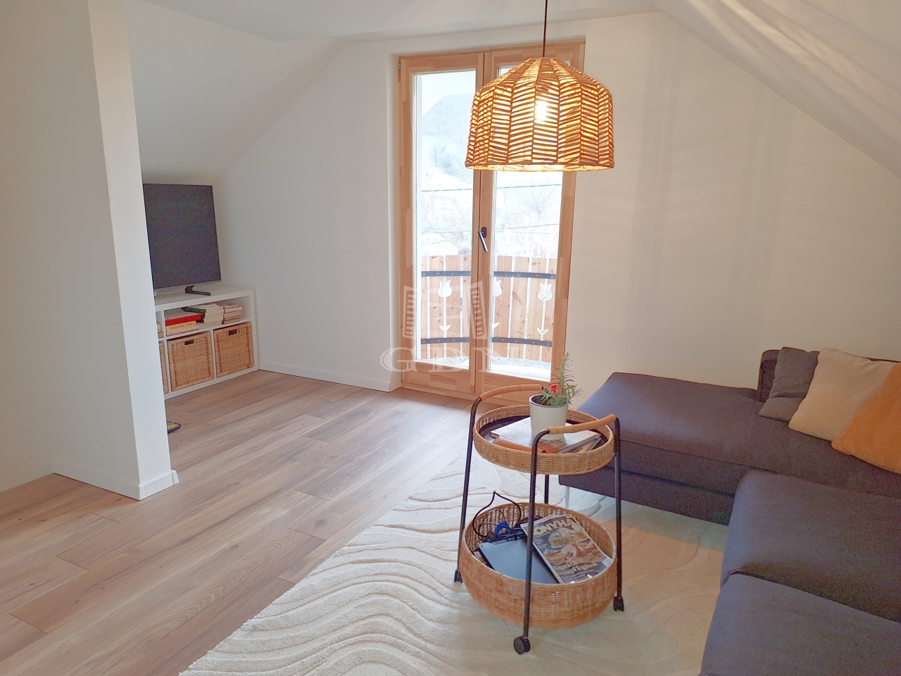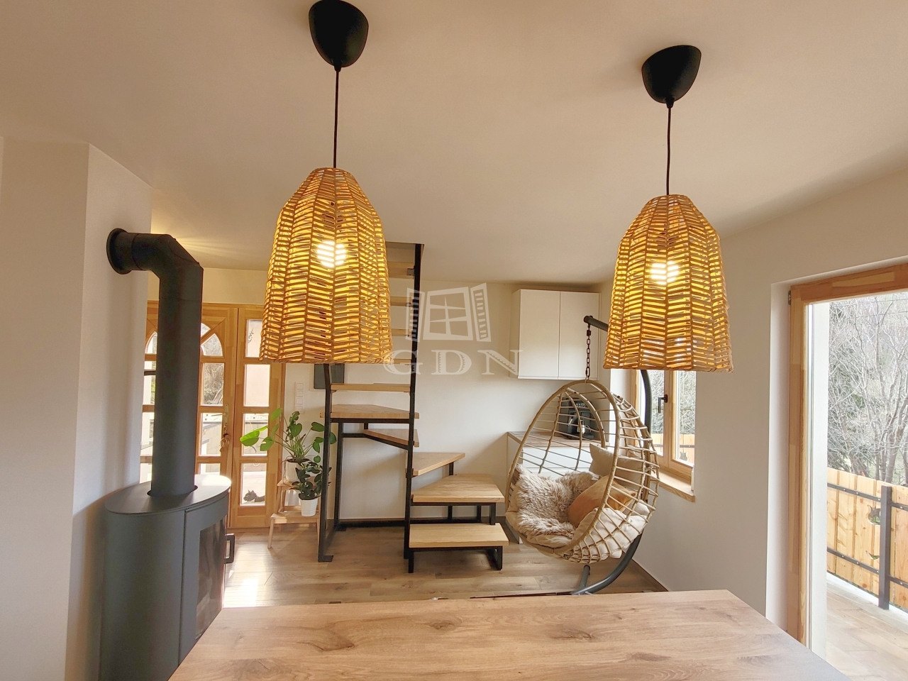 A második szinten található a hálószoba és a nappali. Erről a szintről egy félköríves erkély is megközelíthető.