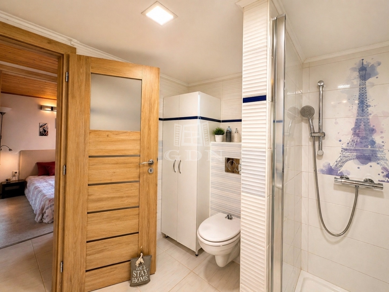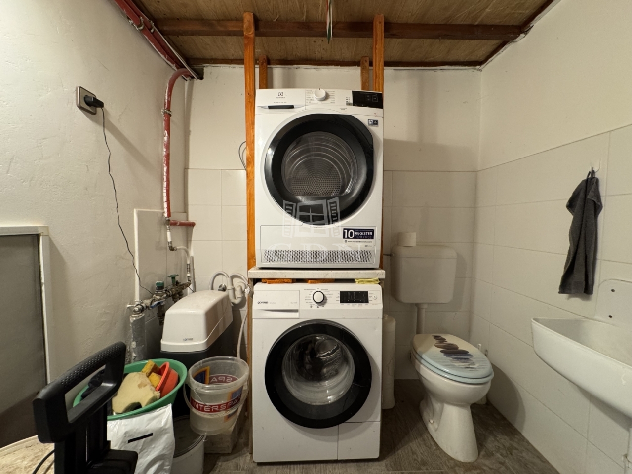 Az alsó szinten egy félkész, teraszkapcsolatos nappali és egy fürdőszoba található, amelyek a közeljövőben burkolást és szerelvényezést kapnak. Ezen a szinten helyet kapott még egy WC-s háztartási helyiség és egy kazánház is. Az emeleten található a jelenlegi élettér: szélfogó, fürdőszoba, előszoba, hálószoba, konyha-étkező és nappali. A tetőtér (padlás) jelenleg kihasználatlan, beépítése előkészített.