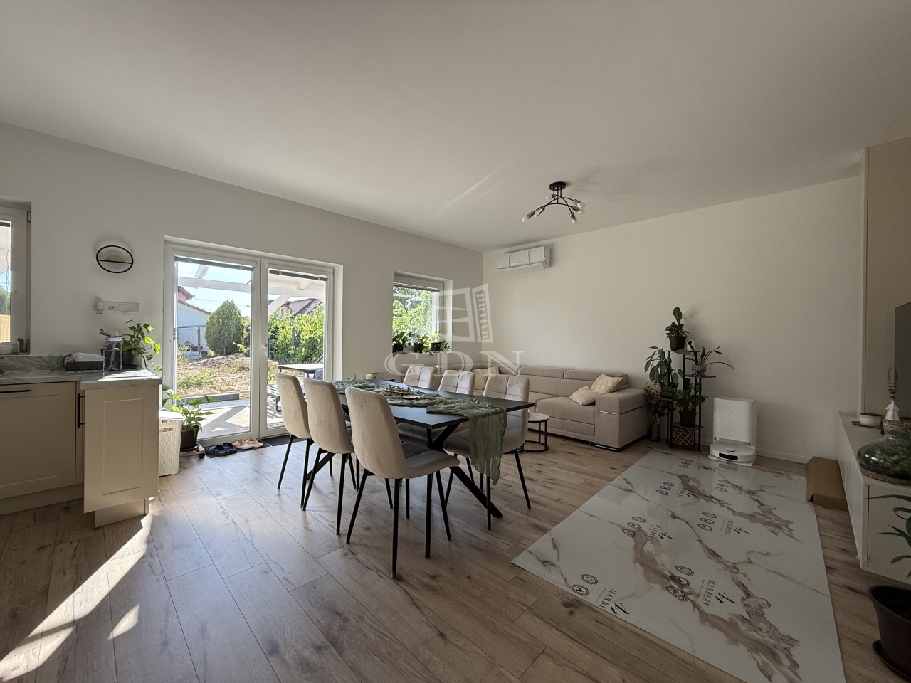 Az ingatlan amerikai konyhás nappalival, három kényelmes hálószobával, háztartási helyiséggel, fürdővel és előszobával rendelkezik, valamint egy 20 m²-es terasz is kapcsolódik hozzá, amely tökéletes helyszín a pihenéshez vagy családi étkezésekhez.