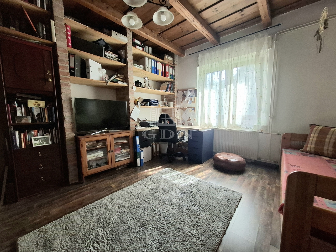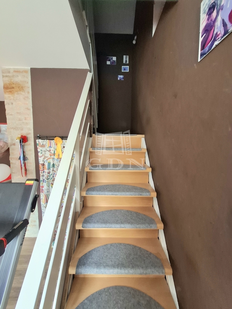A régebbi épületrész különleges hangulatát a látszó fa gerendás födém adja, ahol egy szoba, egy további, mely akár konyhává alakítható helyiség, valamint egy fürdőszoba előtérrel került kialakításra. Ez a rész igazi otthonos, meleg atmoszférát sugároz.