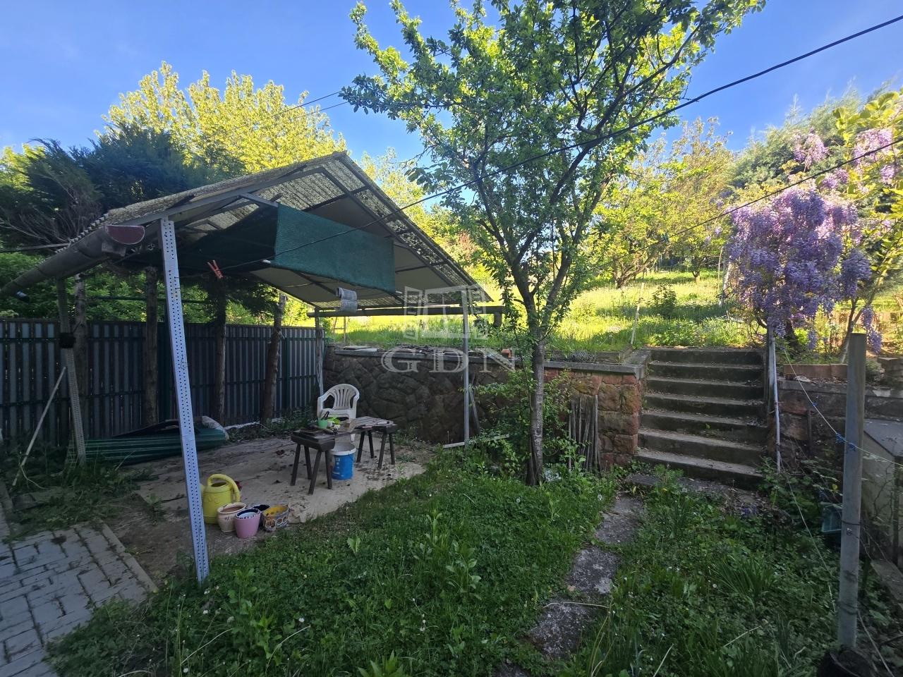 -600 m²-es Kert: A ház mögött található 600 m²-es, kerítéssel leválasztott kert lehetőséget ad a pihenésre, kertészkedésre vagy baráti összejövetelek lebonyolítására. A kertben található kis épület tárolásra és szerszámok elhelyezésére, de egy grillház kialakítására is egyaránt alkalmas.